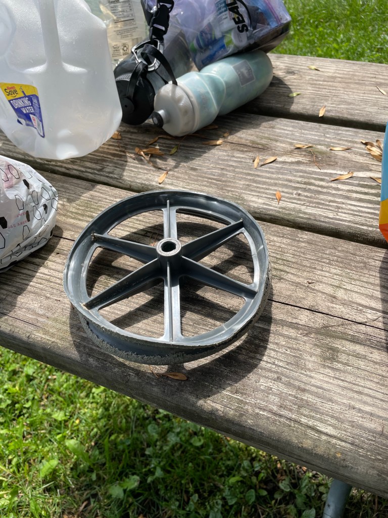After Lake Cass we had our second portage around the Knutson dam, where we broke not 1, but 2 of the carts for traveling overland with 115 pounds of boat and 100+ pounds of gear each. Things seemed a little dire, but I engineered a fix for my broken cart (interestingly by breaking it more then reassembling in a different form). As for Dave’s, the shredded wheel was beyond repair. But guess who ordered a spare cart in the event of this type of thing! Sorted. Though the whole episode, plus a quickly growing hunger and exertion from lifting the boats 5 or 6 times each took a toll that resulted in a two hour portage, recovery and lunch stop (daylight wasted!)