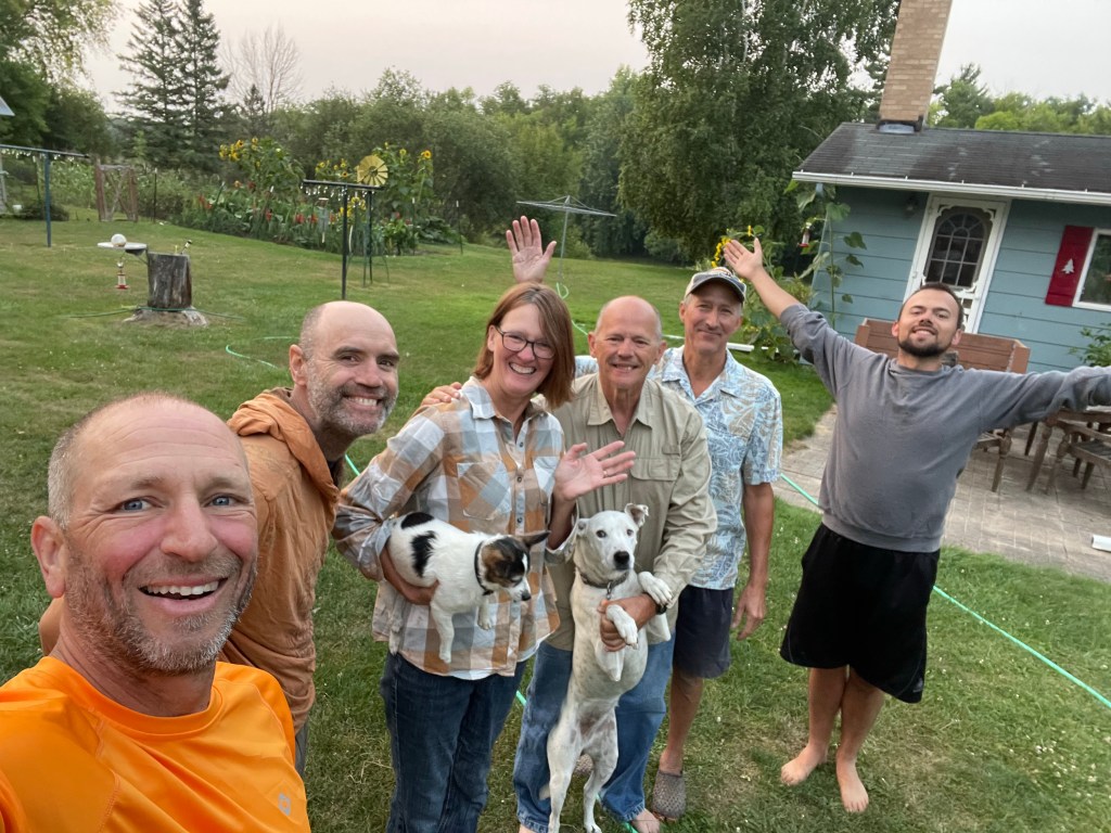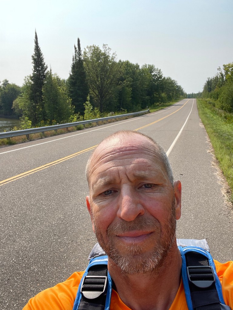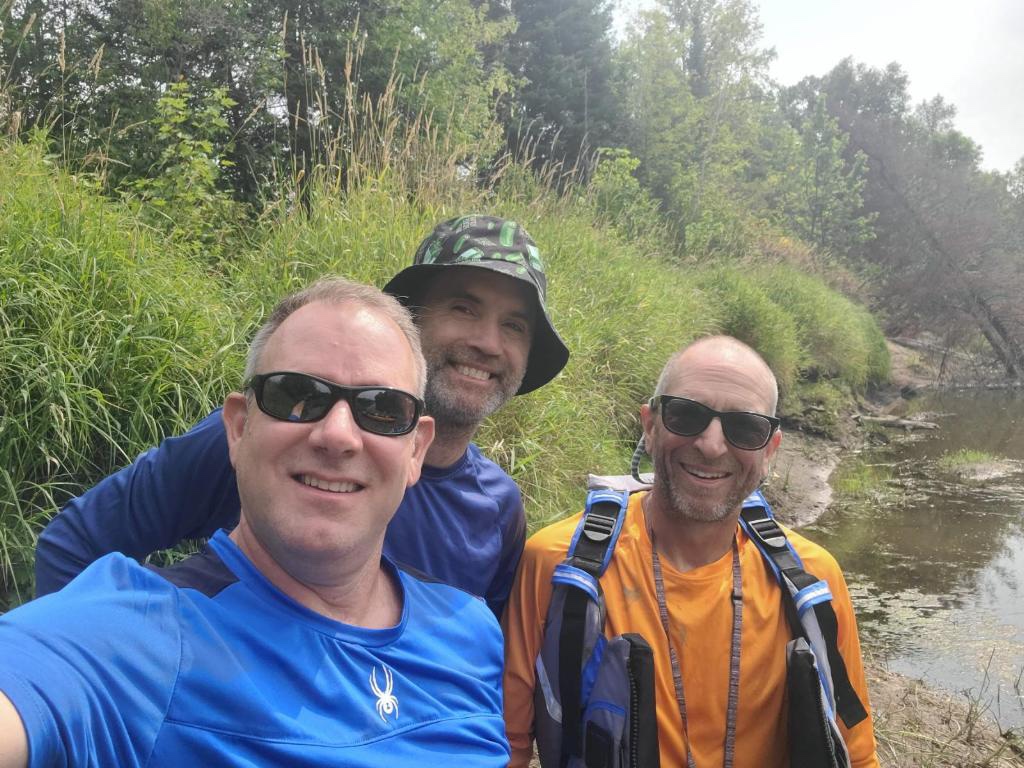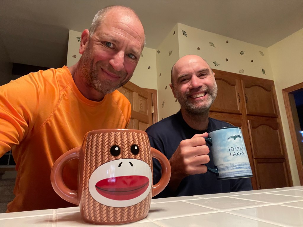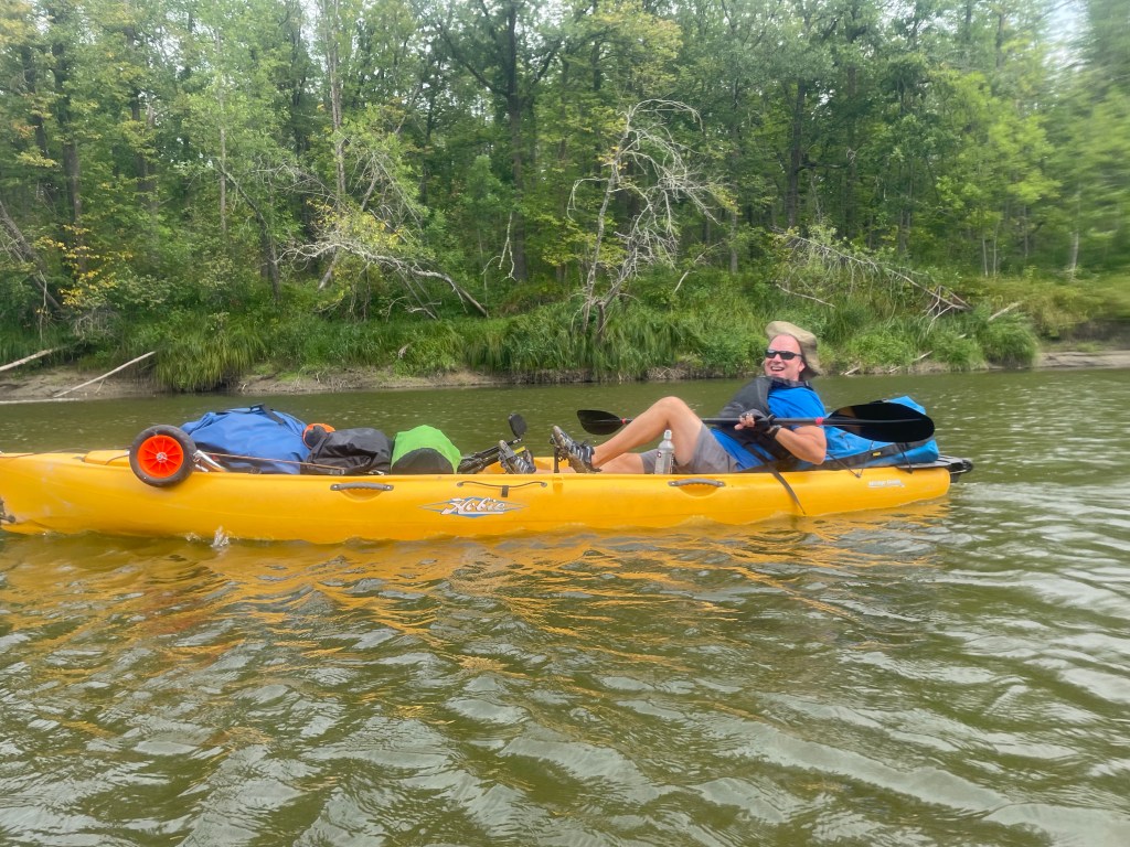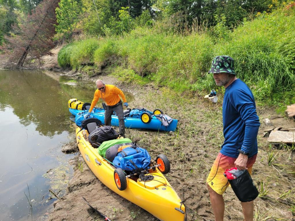 Word for today: BITTERSWEET. Today I said goodbye to Dave until we reach Minneapolis. I think Dave was glad he joined, I know I’m glad I had him along. We had some frustrating times, but we had many more amazing, memorable experiences. Dave and I had a calm 14 miles together this morning before making the planned exchange. Gaily attired in his Pickle Rick bucket hat, I could tell it was a bittersweet moment for him to trade Chad his paddle for the car keys – see you soon brother, I will miss you tossing your last dregs of coffee from the old fashioned mug like you’re the Lone Ranger.