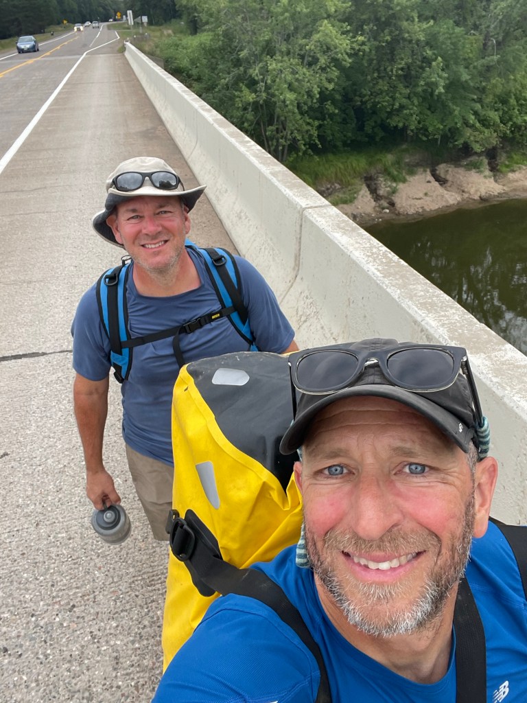 We had to walk back up to the bridge to get even the slightest mobile phone reception. Chad texted Heidi and canceled his credit cards. I informed Christin the posted to the Mississippi Angels Facebook group – we would be in need of some help. We had 28 miles to go to Brainerd where we hoped we could replace our necessities. The day just got more challenging with this mental burden on top of the physical challenge. But, as I said in Mr. Potato Chad’s introduction: we’re both problem solvers and generally optimists, we only lost money and stuff, things will be fine.