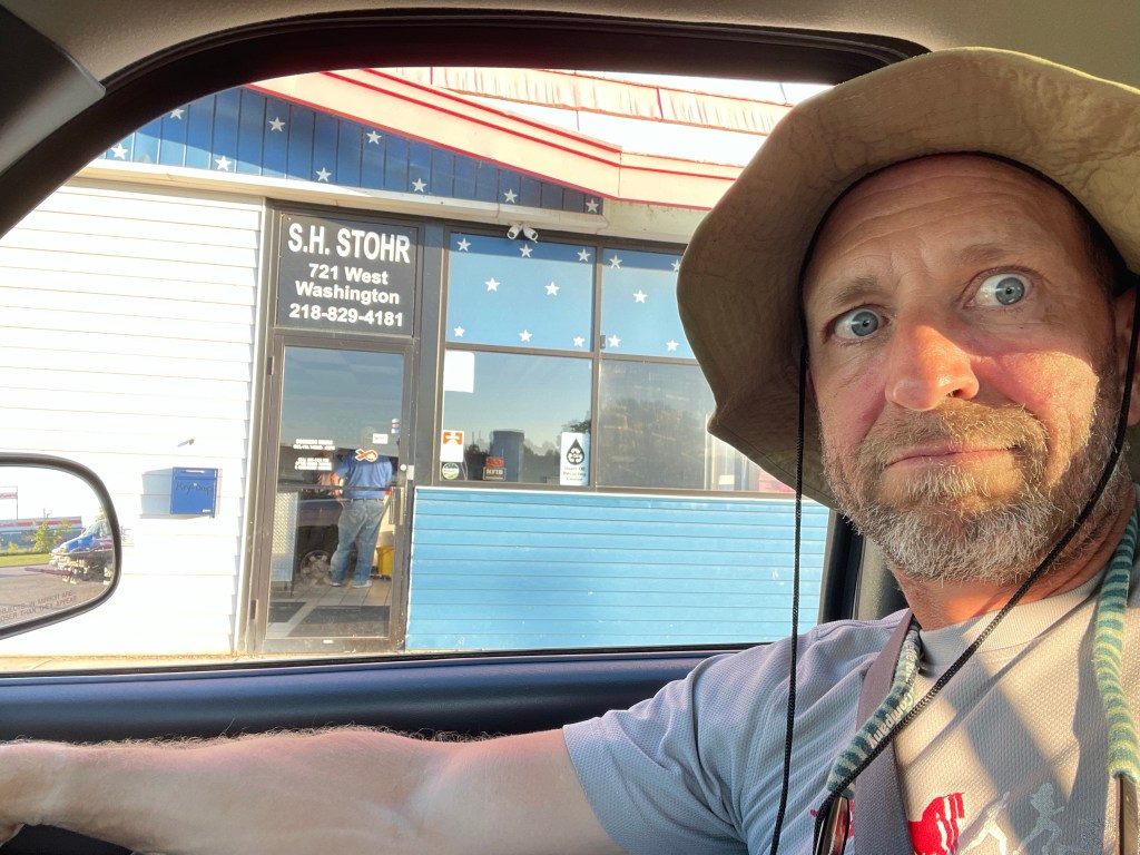As we left Fleet Farm, Bill asked to run by the garage that was expected to be towing Bill’s truck hours ago. Apparently AAA or the tow company dropped the ball; it had been hours and his truck was still sitting where he left it. Bill went inside the garage while I texted with Chad about overnight options.