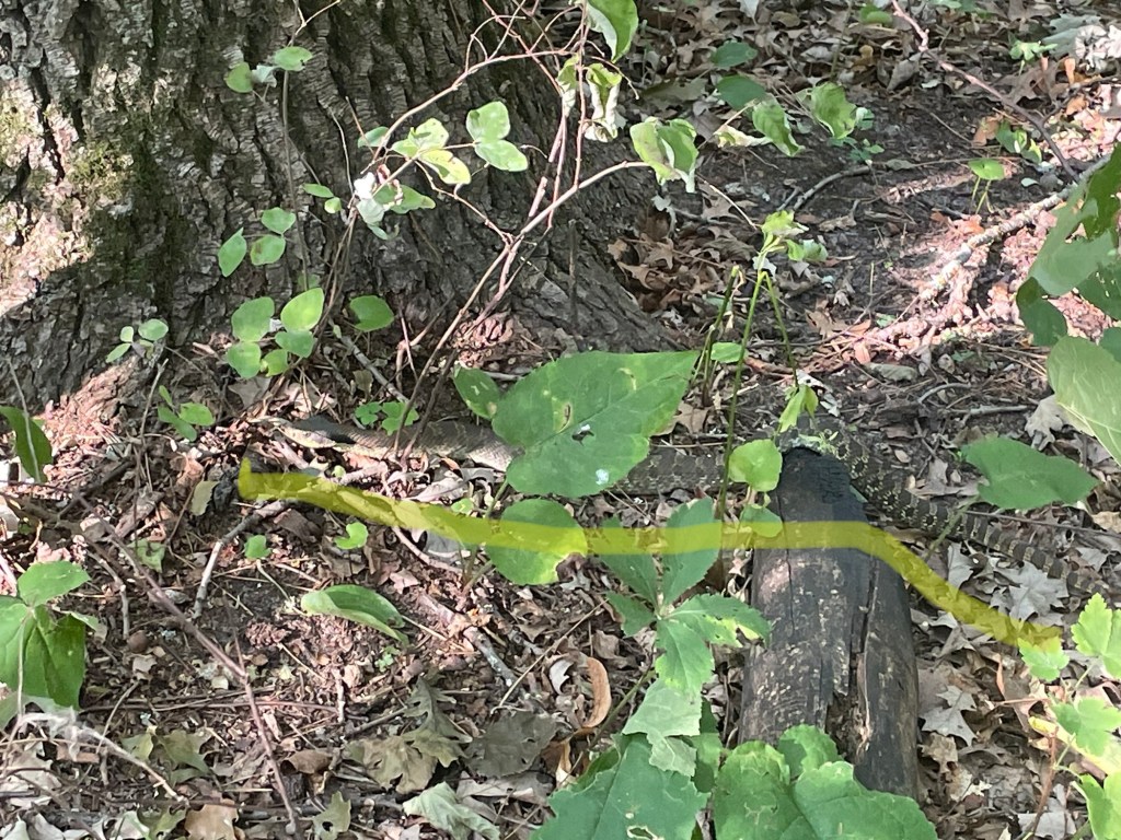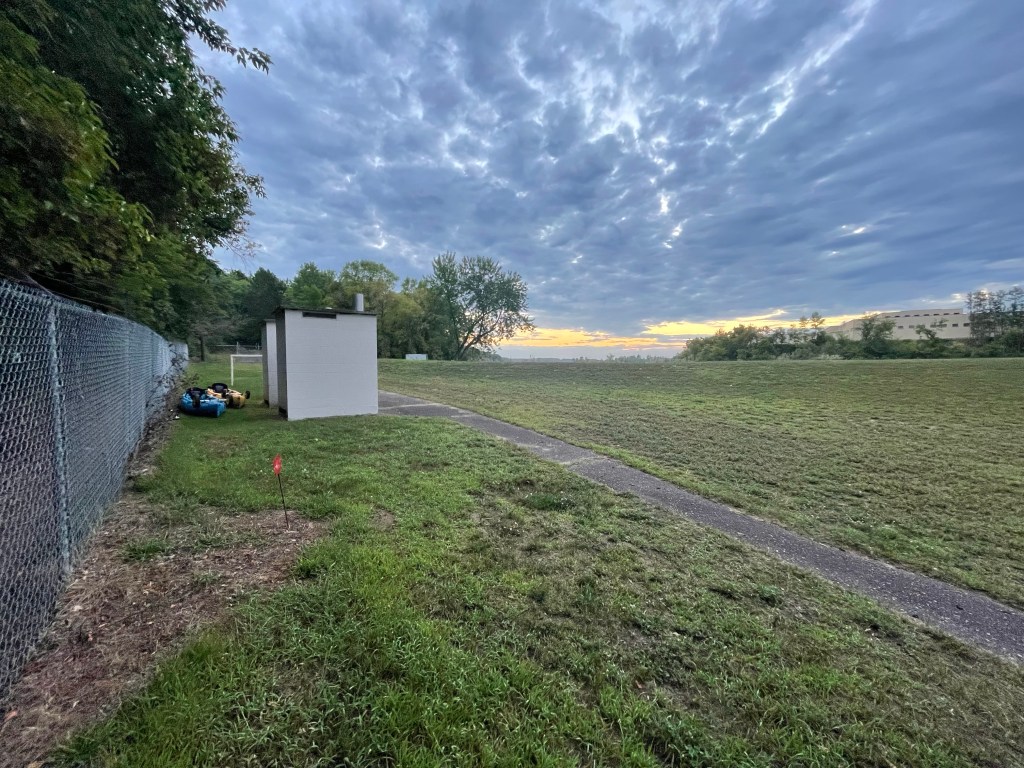 What I probably should have said in closing yesterday: we knew camping wouldn’t be strictly allowed at the dam portage, but we felt good about our stealth chances. We stashed our boats behind the two outdoor toilets at the portage, which provided good cover. And, we found a place near the dam behind some trees to pitch our tents, that may or may not have still been in view of the security cameras – camping behind the toilets seemed unnecessarily stealthy.