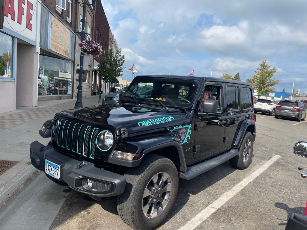 Another odd thing about Brainerd: there were a lot of females in Jeeps with speciality phrases on the side. I saw Jeeps that said: Badass with Mascara, Wicked Witch of the North, 4 Wheeling Bitch, and Babe with Mudflaps (I trust she’s not familiar with the Spinal Tap soundtrack). I stopped one friendly lady who was about to pull out of her parking spot to get a photo of her “Sassy” Jeep, and she said to make sure I get the skull in the photo, that’s her favorite part (Christin will love that).
