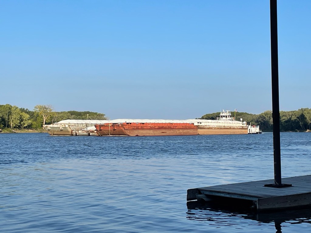 We came upon an ADM operation where it appeared rail cars were being loaded with high fructose corn syrup, or corn oil, or some other liquified corn derivatives that are destroying our collective American health. The whole scene smelled like Frosted Flakes and I wondered how much of this bucolic scene in Red Wing had been made possible by ADM. We saw tugboats, rail engines, grain silos and barges with ADM logos. I know people thought negatively of my 31 career supporting “big oil”, so I feel a little hypocritical thinking poorly of ADM, but the unnatural modification of our food supply seems to be a more acute impact on everyone’s health. Sorry… back to the river!