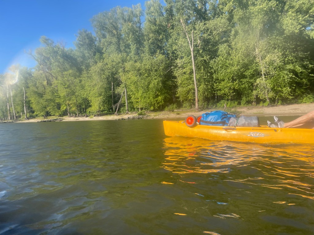 Being fresh off the river with Matt, and knowing Mark just as well, I can see this whole day playing out as if I was there! The frustration building, the doubting of ones life choices, the loon-speak — all of it. Matt and I had a few days where we seemed to be directly into the wind, no matter which way the river turned, and coming up to any of the dams, the river is just a big lake for 7 to 10 miles prior. One thing that’s not too obvious, but that is a constant annoyance is that these Mirage Oasises don’t track well like a canoe does. If you take your eye off the directional point for 2 seconds, literally 2 seconds, the boat veers wildly to one side, spinning out like a cartoon car on ice. So any reach across the boat to grab the water bottle–spinout likely. You can see this in action in Matt’s video above where he ends up pointing at Mark. You lose forward momentum, and have to pull some big paddle digs to get going the right way again. Its quite a thing for a boat thats not really there!