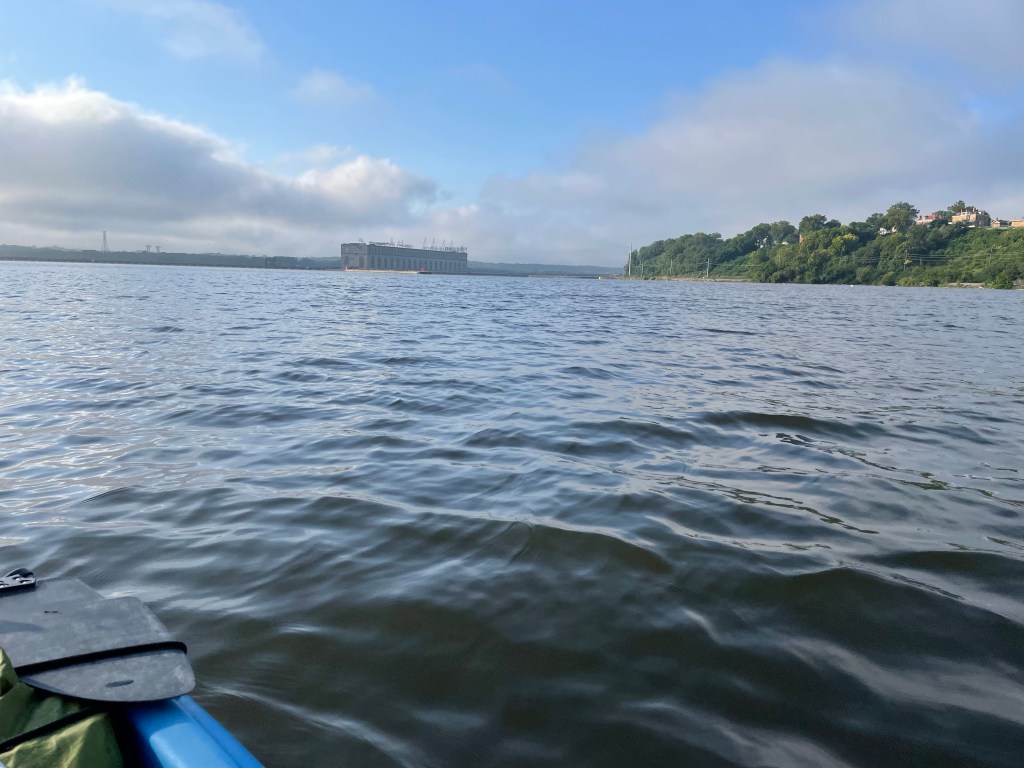 Though I only planned for about 20 miles today, after an early bedtime I wanted to make a sunrise start. Plus, I had this recurring vision of James Caan in that movie Misery; Peg had a little Kathleen Bates ‘suspiciously kind’ vibe and I wanted to get out before being chained to those 4’x8’ plywood flip flops. With no tent to breakdown, and opting to forgo the morning coffee, getting on the water quickly was not a problem. Just before I put in, Jennifer came by with Bonnie & Clyde, leaving for their morning “walk”. I did notice the very small Connection Bank in town yesterday, maybe she’s on her way to make a “withdrawal”, so I launched as soon as she departed.