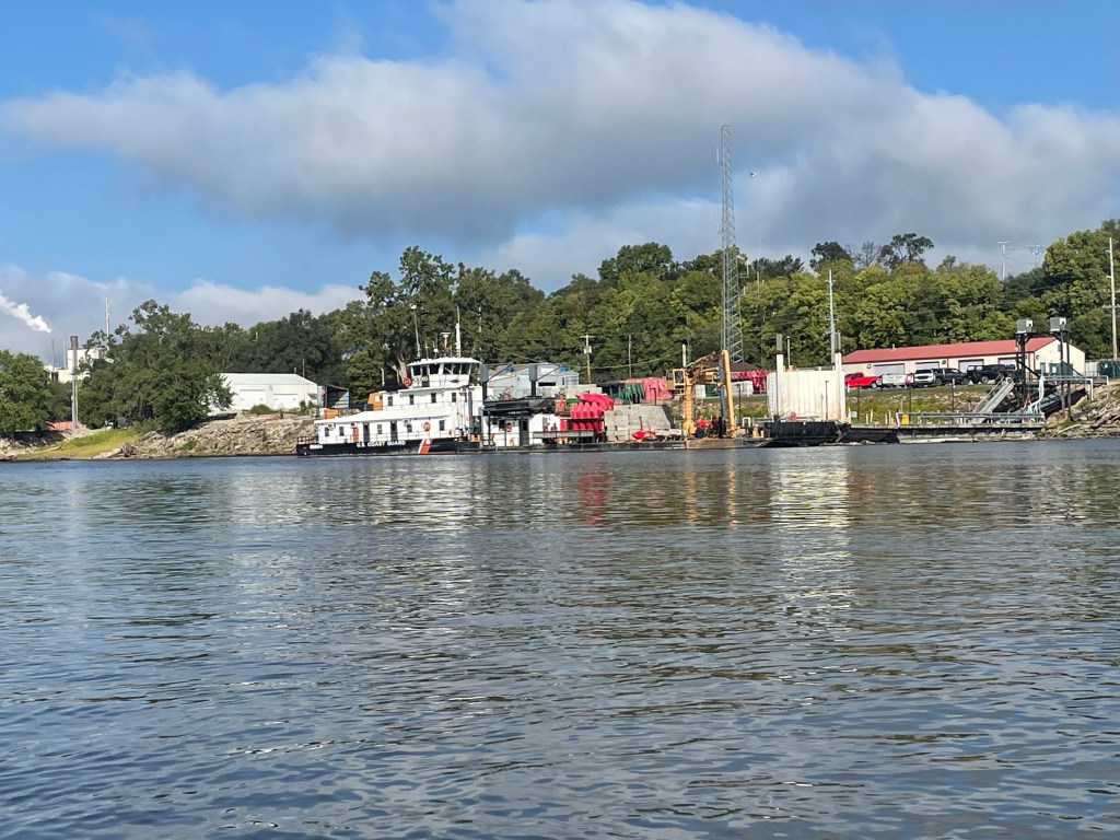 After the fog cleared, I came upon an operation involving the US Coast Guard; they were helping to replace river channel buoys. (Or maybe they were just peddling spare buoys for use as lawn ornaments; in military fashion, I didn’t ask and couldn’t tell.) My nephew Giovanni is in the USCG and I wondered whether he might peddle buoys up ‘Ol Muddy one day. Giovanni – Trade the fishing, surfing and pirate chases on the Atlantic for a quieter river life? I think he would prefer court martial, or even execution.