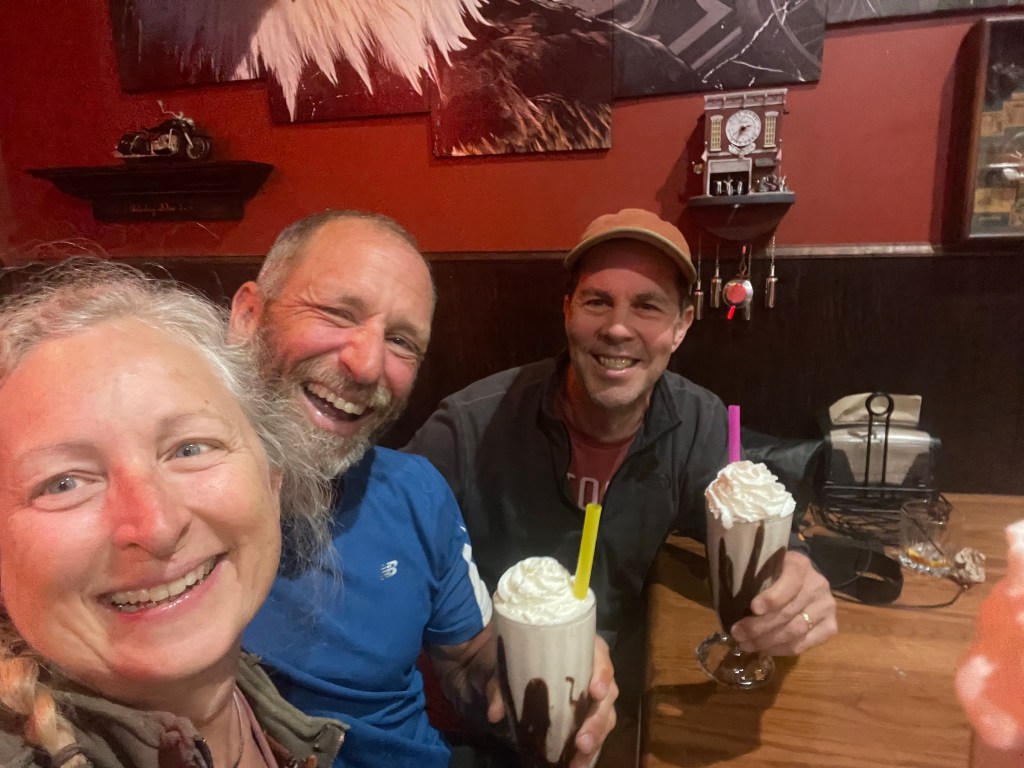 The Fry’s took me across the river to Keokuk as they hadn’t checked into their AirBNB yet, and there were more dining choices than in Warsaw. We met AirBNB owner Ginny who was very friendly; she showed me her coffee shop where she roasted her own beans, her tea shop at the end of the street, her artist studio where she held painting parties, and she had pottery roasting in the kiln next to her beans – Ginny has a lot of irons in the fire. Ginny introduced me to Brett, the owner of Sweet Sally’s Ice Cream Shop & Bar next door; he allowed us to bring the Fry’s dog Blanca into the restaurant where we dined. It seemed strange to have an establishment that was part ice cream shop and part bar & grill, but it seemed to work. All of his clientele enjoyed seeing Blanca. One woman was particularly enamored with the dog, then she looked at Cindy and said, “I love your hair… it’s so gray!” I think Cindy wanted to get up and claw her eyes out, but she was afraid of making a blog worthy scene. We all just wrote it off as the strange ramblings of a crazy, but brutally honest woman.