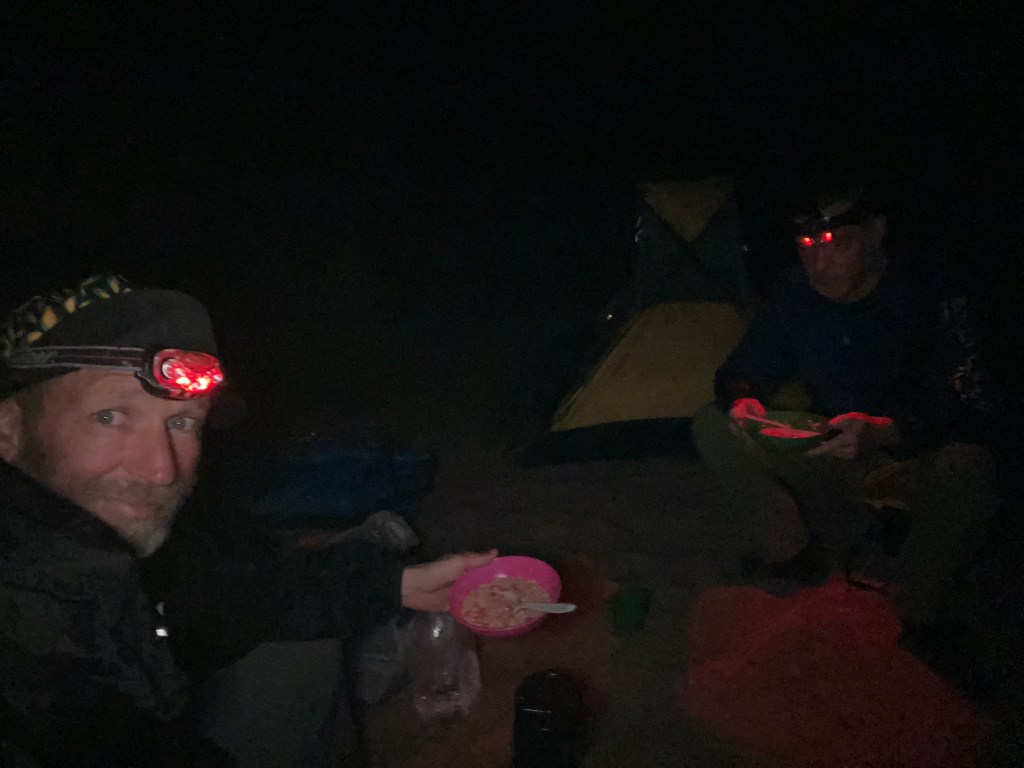 Word for the day: UNFALTERING. After a disappointing amount of mileage yesterday, we needed to see what we could do. So we set out at first light and made steady progress.