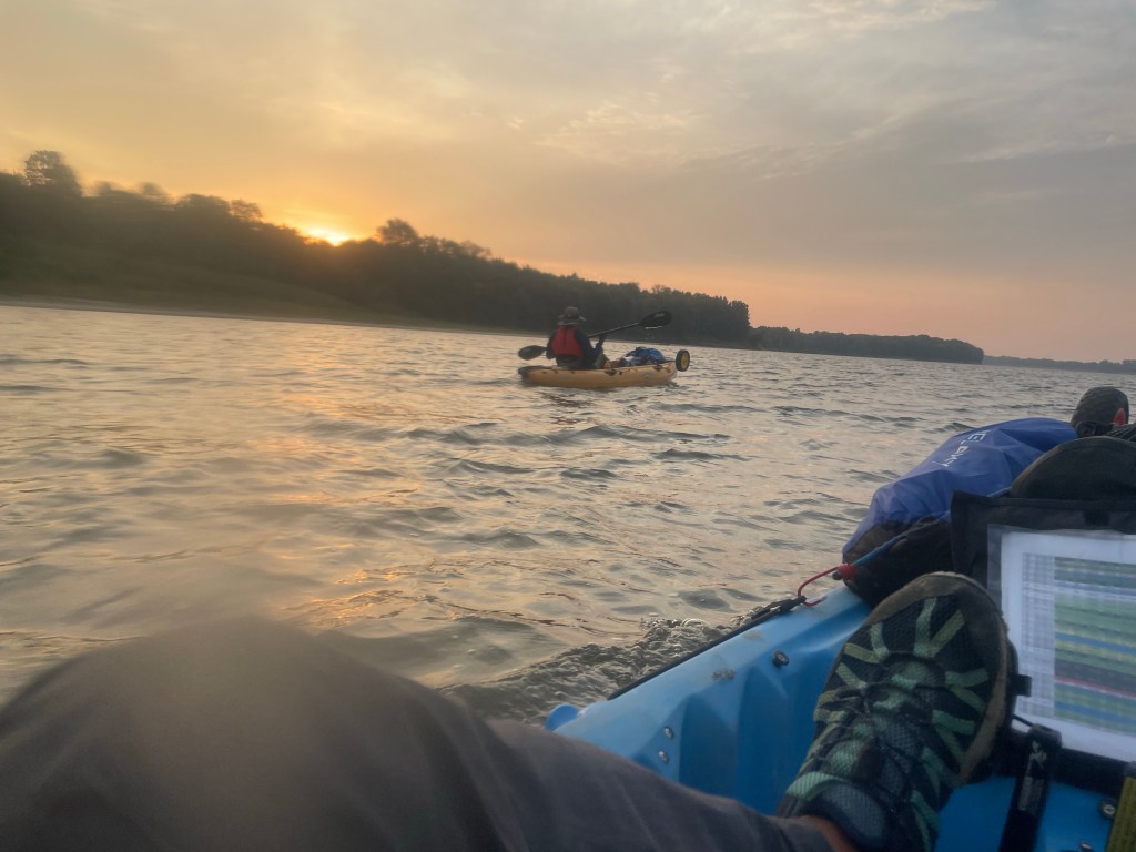 There was a slight wind and minor chop on the water, but things were progressing well. We commented how the first day with Mudd, I traveled 23 miles to his 30+ due to his serpentine path; now he was getting things under control and moving in more straight line fashion. Now he may not be setting any records, but he was at least becoming more efficient.