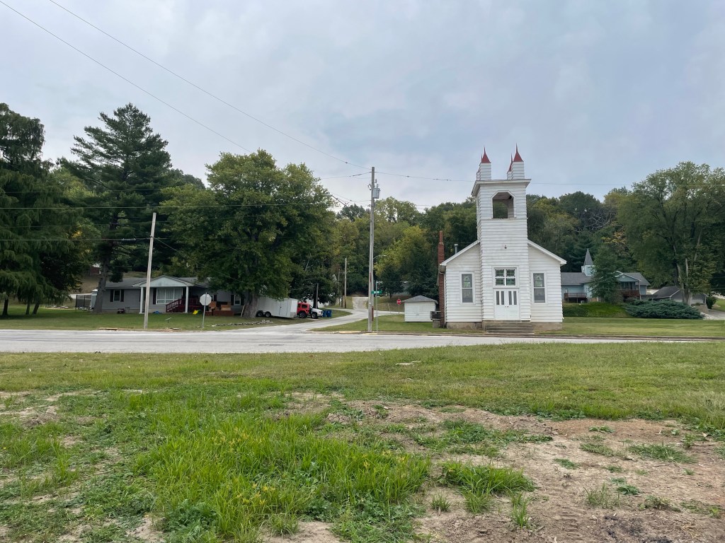 Mayor Steve was very friendly, and helpful, though not quite full of the generous hospitality we’ve come to expect from River People. Steve worked for Kawasaki for about 30 years, mostly as a sort of “test pilot” putting prototype motorcycles, ATVs, and wave runners through some tests. He’s lived in Hamburg since 1991 and became mayor about 8 years ago, when nobody else on the village board wanted to do it. He talked about the work release program that had inmates in town mowing the lawn at the park; he said he was just about to go fix them lunch. He said we could spend the night in the park if we wished, though he recognized it wasn’t even noon, so laying up for the day didn’t seem likely. He said he would like to chat some more, but he had to go attend to lunch. Not waiting any longer for a lunch invitation that didn’t seem likely, I asked where to find the water – Steve pointed up a hill a few blocks to the village hall.