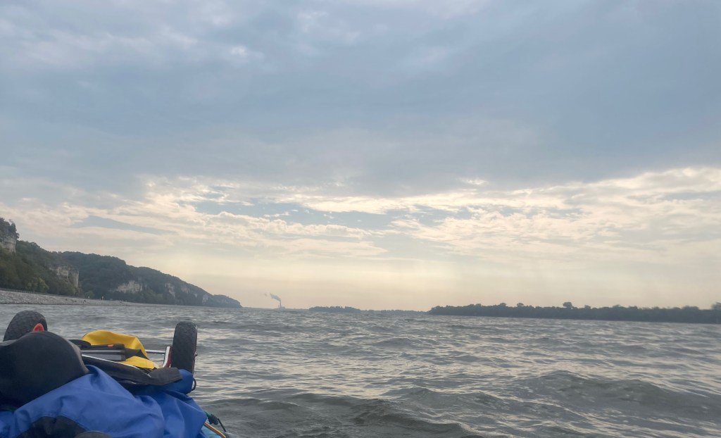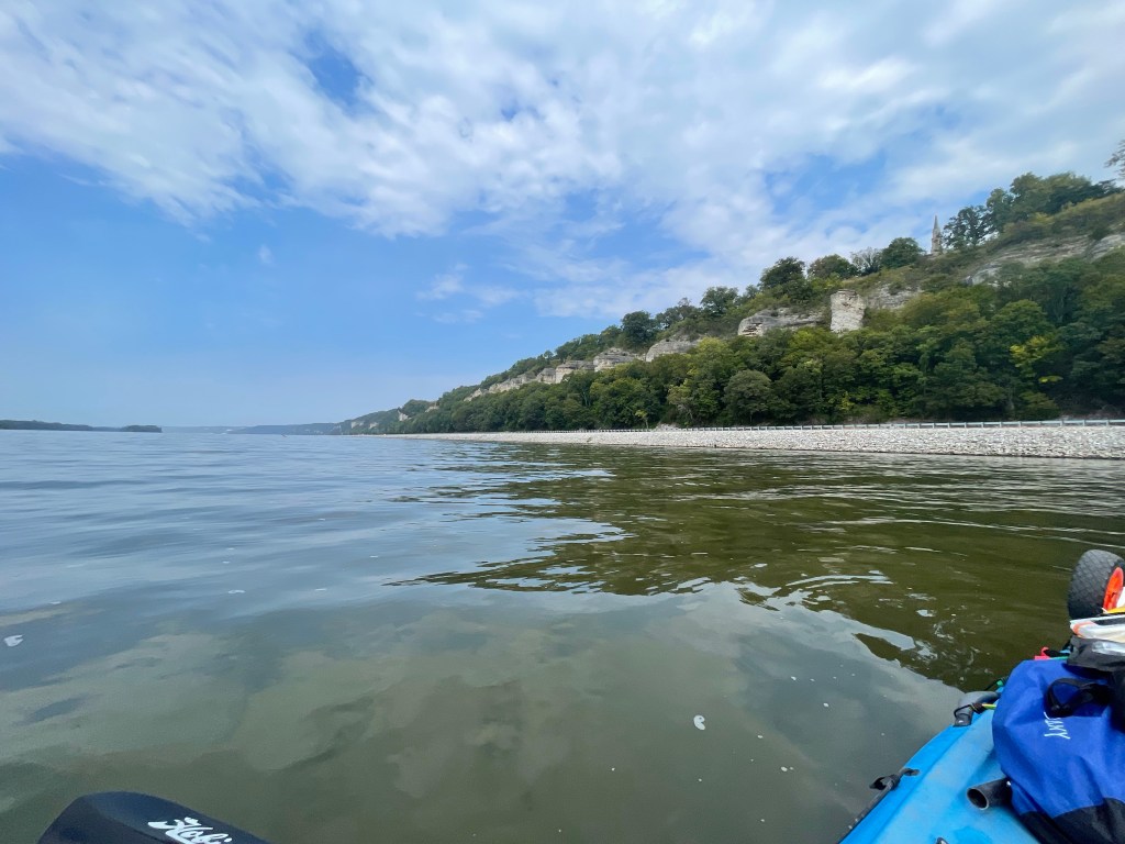 We cruised past some beautiful bluffs that stretched for about 5 miles from Grafton. Once the weather calmed, I heard church bells ring on top of one bluff and saw a steeple; I imagine there must be some quaint village up there that I’ll try to investigate one day.