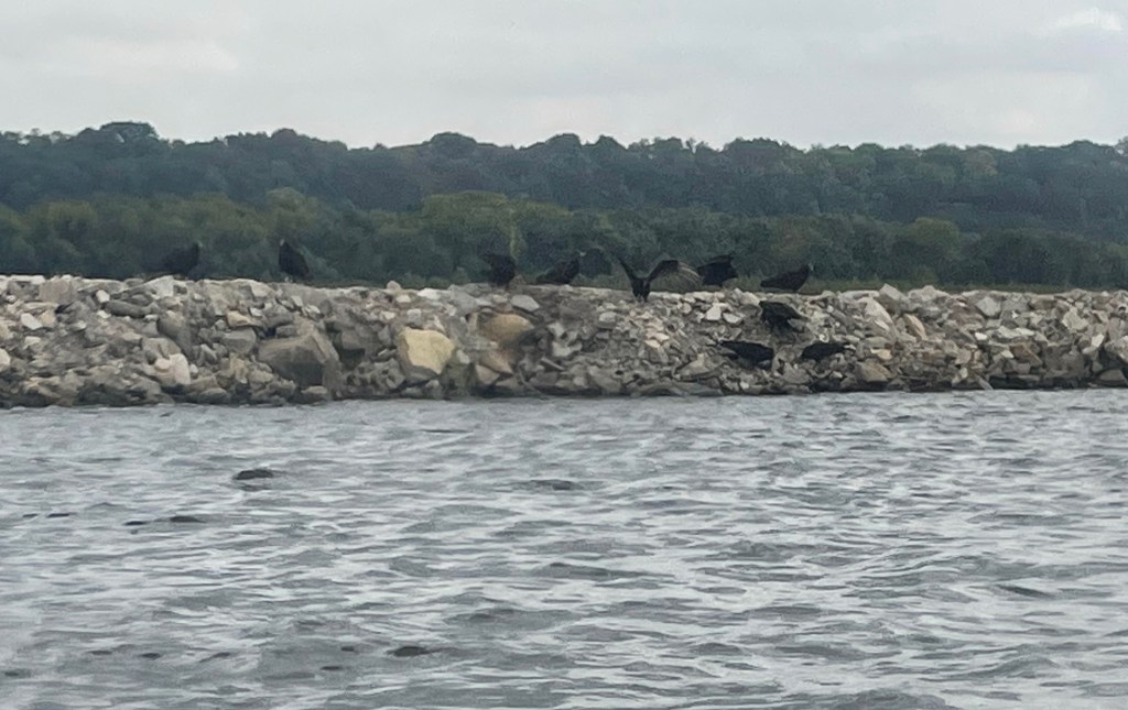 The day started with a 10mph east wind, which due to the bend in the river was right in our faces. We weren’t catching many breaks on the wind. I kept my eye on the distant power plant whose steam emission acted as the world’s largest telltale. The rising exhaust started the day around a 45 degree angle, then lowered to about 30 degrees indicating an increasing wind, but after an hour or so it started to rise again to indicate relief from the wind was on its way.