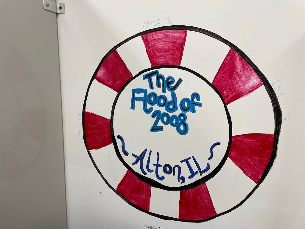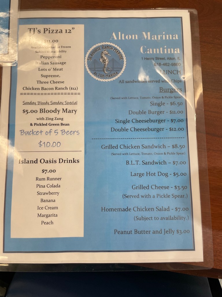 A mural in the bathroom referenced the flood of 2008. I’ve been amazed by the various flood years, and some areas are flooded while others are normal. In Hamburg, mayor Steve referenced the flood of 1993, which seemed to be a record high water year for many locations, but he also talked about 2018 being only 14” lower than that, and 2015 18” lower, etc. it seems every 3-5 years is the span between floods anywhere along the river.