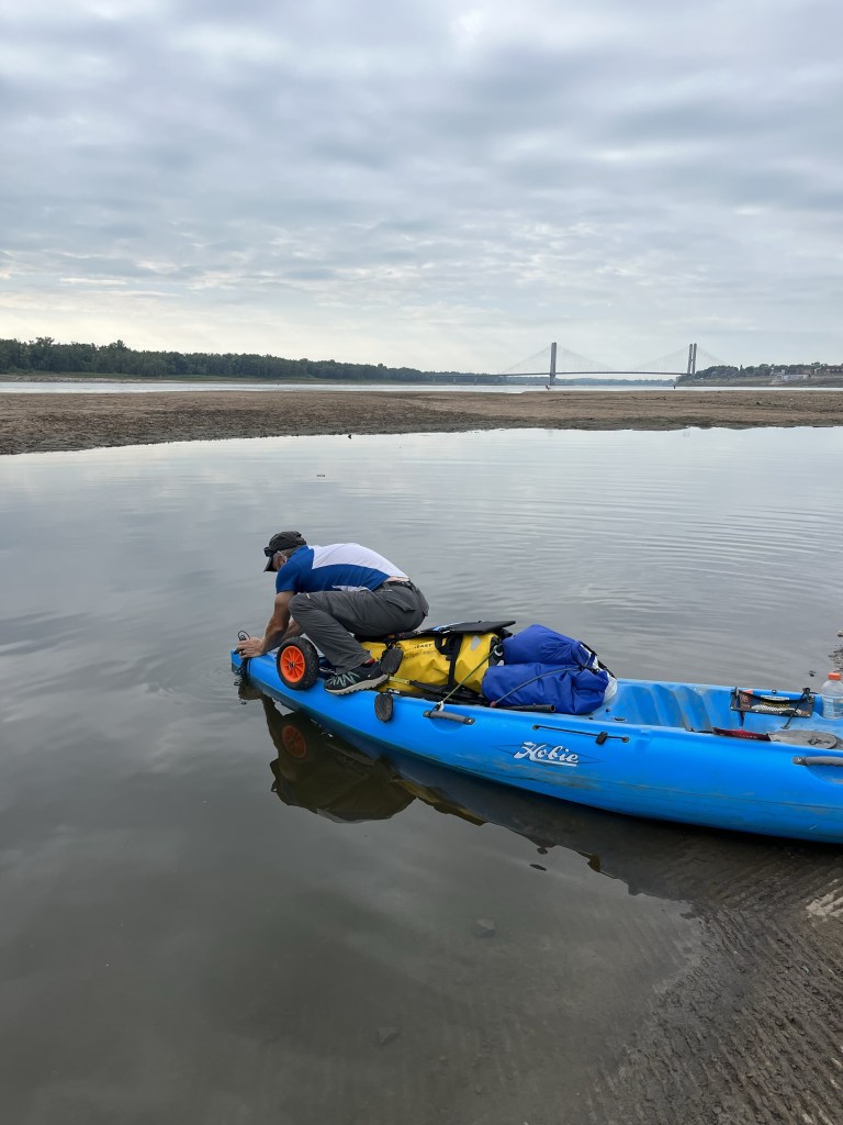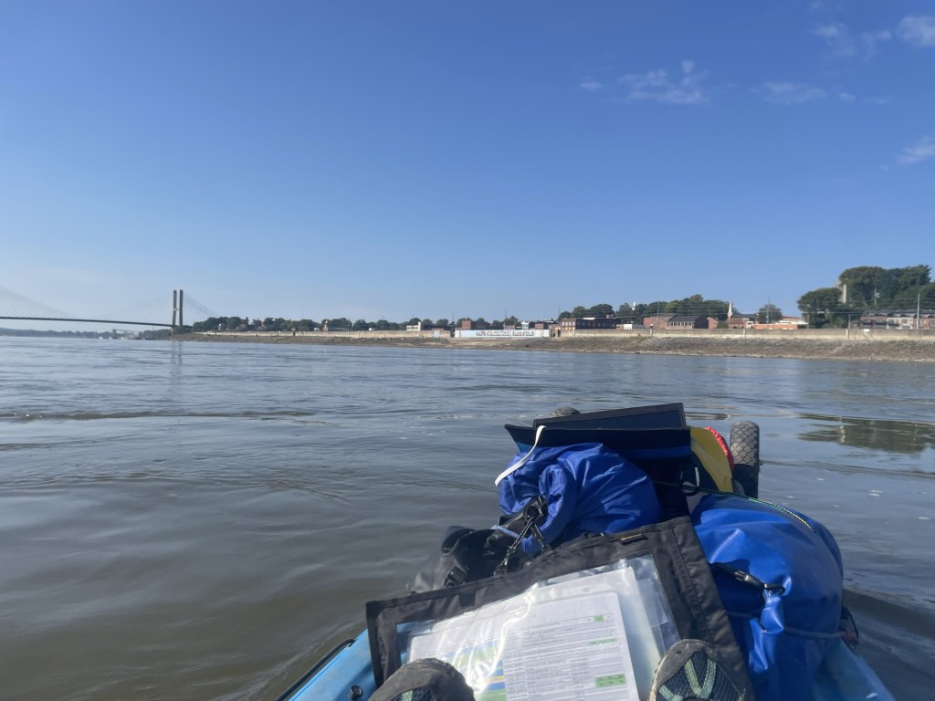 Thankfully with the fast current I made the mile back down to Cape Girardeau in quick time, quick enough to get under the bridge and watch as Christin drive across with ‘Ol Yeller headed back to Batavia. That felt like the final act in my solitary confinement: there would be no second boat from here, there would be no side dishes to support me, there would be no other support planned of any kind for 910 miles. I get asked periodically why I’m doing this, and I sometimes wonder myself; this question was heavy on me at that moment.