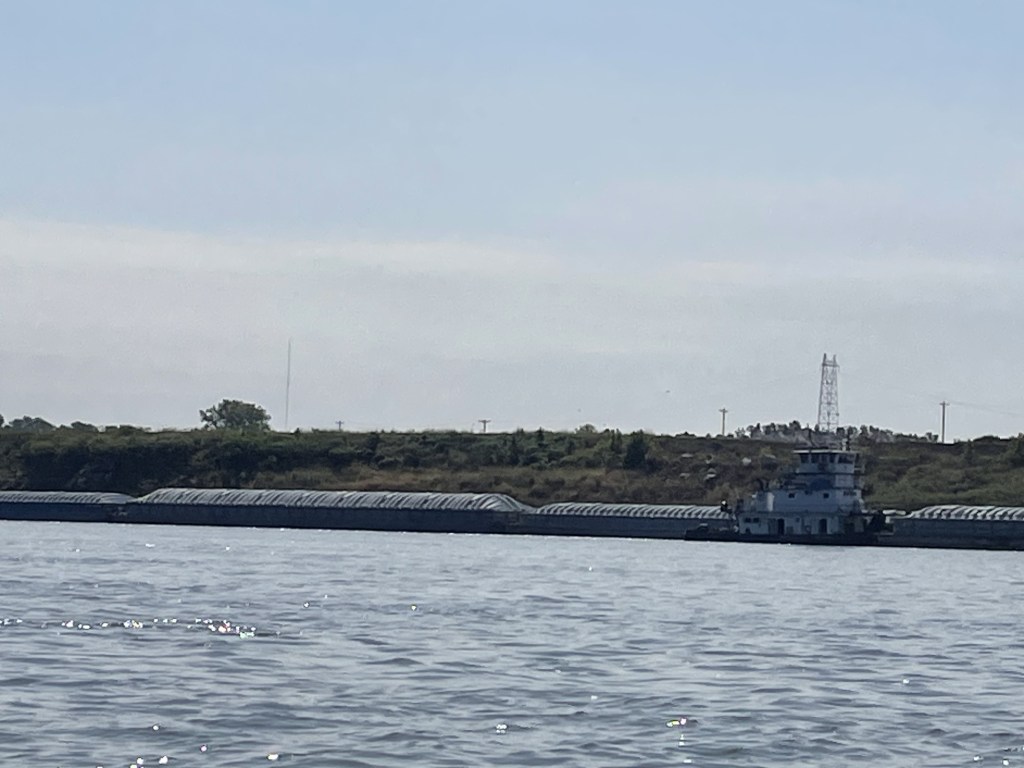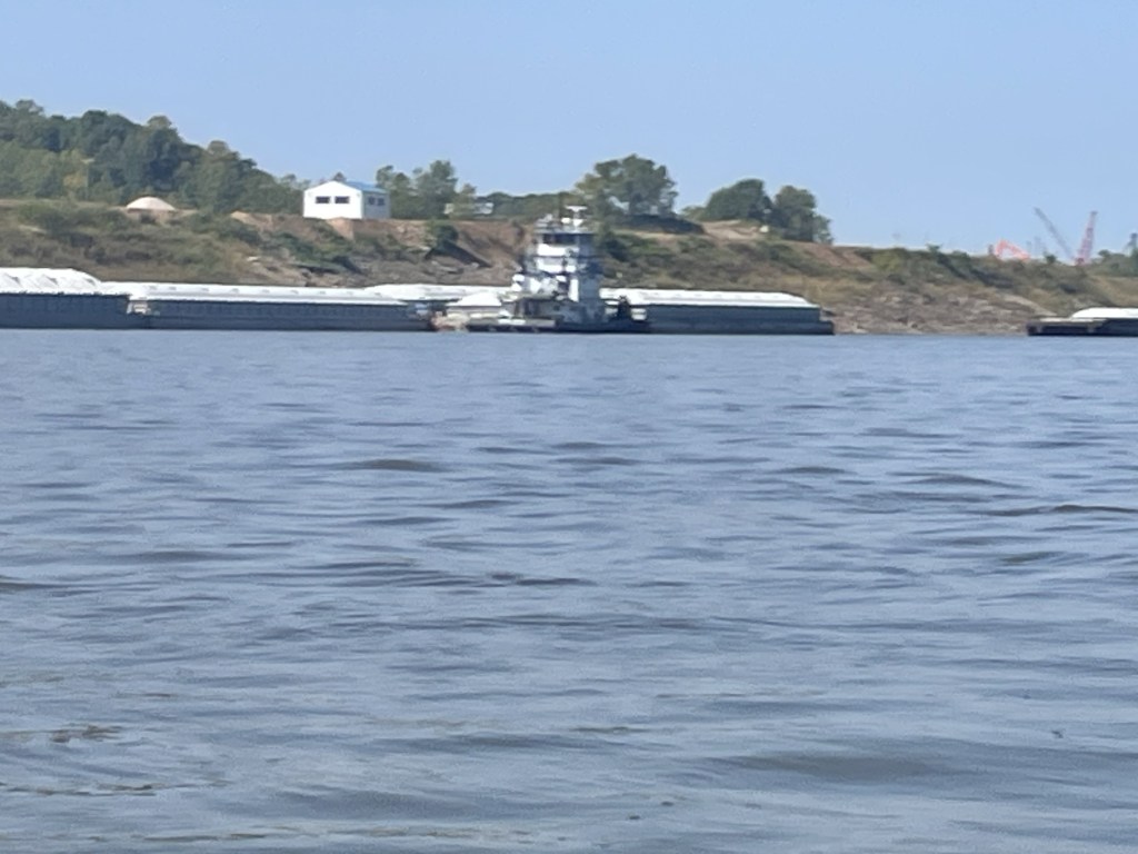 But after Cape Girardeau was out of sight, my thoughts changed, largely because I was cruising at a consistently high speed. A small tugboat pushing 6 barges had left Cape Girardeau about 10 minutes before me, and he still looked to be about the same space in front as when I started, maybe closer! Could it be that I was closing in on a tug boat? This no doubt spurred me on.
