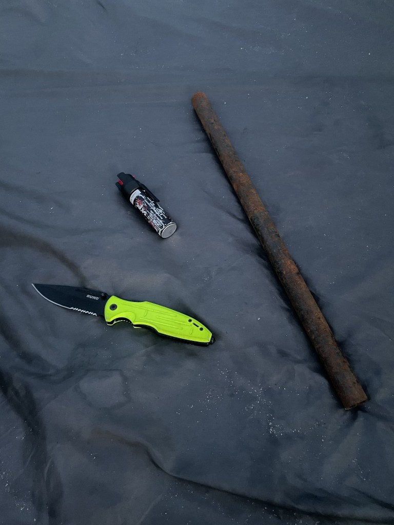Last night I slept with my knife in the open position, next to the pepper spray. I also had with me a 20” length of steel pipe I got from Jeff Bromenschenkel to fix my busted cart. I decided these weapons would be no good if I had to fiddle around looking for them while coyotes tore my screen tent apart. I layed awake a while last night trying to figure out an attack plan against coyotes with three weapons in two hands; I never figured that out and thankfully never needed to. When I woke in the morning with my weapons in the dawn light, I thought it looked sorta like a Clue game, Leechman edition. Maybe I’ll call the people at Hasbro. I imagine playing with grandkids one day and venturing my final accusation: Mr. Potato Chad did it in Brainerd with the bungee cord! I’ll let you know when I get a response from Hasbro.