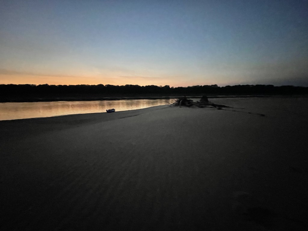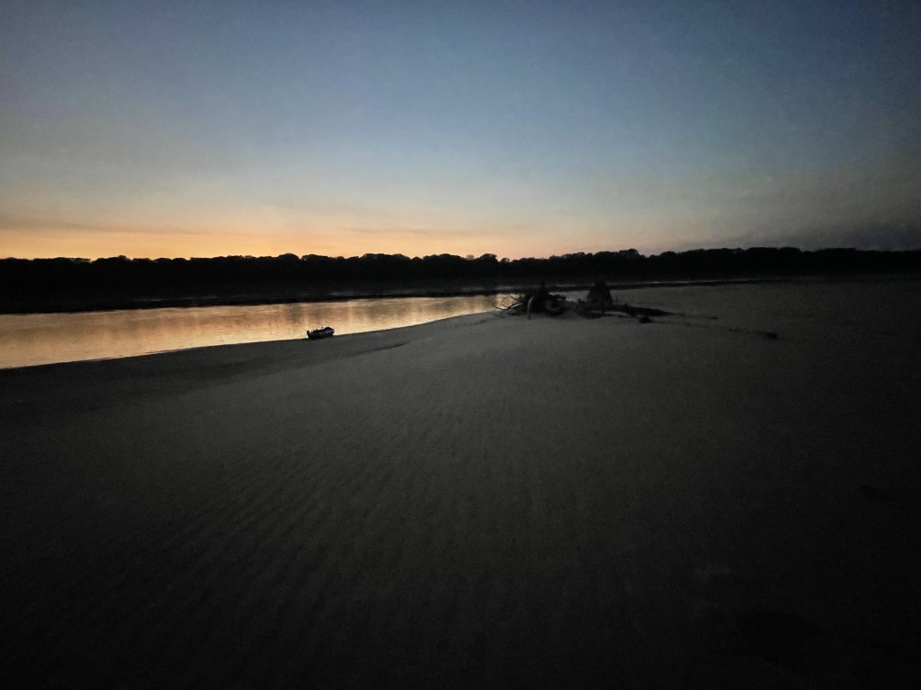 I know I’ve said already, most people are generally nice; you can find good people everywhere. But I just feel like avoiding Arkansas. Instead, tonight I chose a beach in Tennessee with copious dune buggy tracks, which also doesn’t excite me. And I forgot to mention that last night on the Missouri side someone was driving a dune buggy along the shore parallel to me. I’m not sure if they were making sure I’d stay away, or if they wanted a conversation, or neither. Also I couldn’t see the driver, I could only see a large Great Dane, which made it look like a darker version of Scooby Doo was driving the buggy. Heck, maybe Shaggy was there and I missed out on some pizza and Scooby snacks! And the whole Scooby thing reminds me of that guy with the inflatable kayak that Jeff Bromenschenkel told about on day 7! (Darn that day 7 missing blog.)