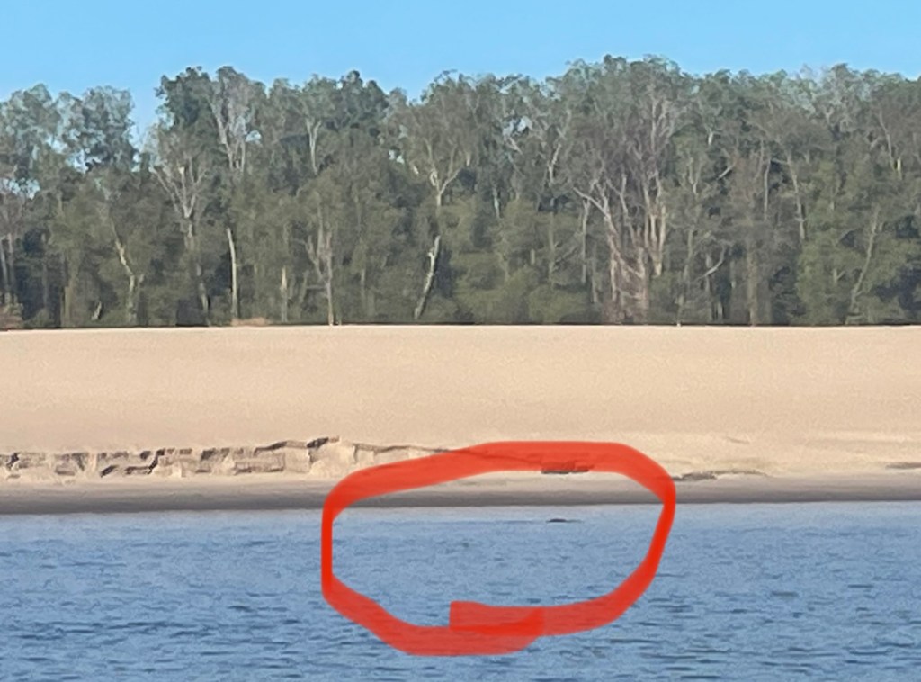 Okay, let’s get this out there to start. I’m officially in alligator country! 🐊 It was 4:45 this afternoon, passing mile 316. I was coming to the end of a nice big sandy beach and was thinking, “I’m tired, it’s getting late. I know we wanted 45 miles, but 39 is okay. And we’re not gonna find a better beach than this before dark. Whaddya think Strom?” Then when I started to turn towards the beach, there was a low sort of hiss, and some movement as a 4-5’ long alligator turned and slid from the beach to the water. I instinctively said “yikes!”, and of course couldn’t get my camera fast enough to catch him on the beach. For what it’s worth, I did get a picture of him floating in the water.