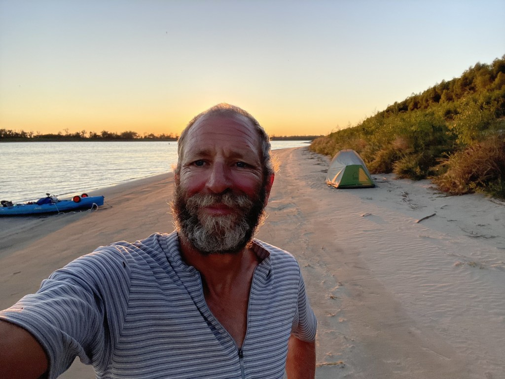 I did find a nice beach again, though they’re becoming more sparse. But, I saw the same beaver prints and slide marks about 100 feet from up the beach. As I write tonight I’ve heard a beaver in the water, and heard him scampering away from my vicinity when I was about to take a look. There’s also a bit of sniffing and snorting in the woods behind me, but it sounds a little different to what I’ve heard before from the deer. But, I’m not really concerned, I’m tired, and I’ll remember new rules 3 and 4. Kevin (Dick Dastardly) reminded me that it’s the gators you don’t see that you need to worry about. I haven’t seen a gator in 2 days…😬